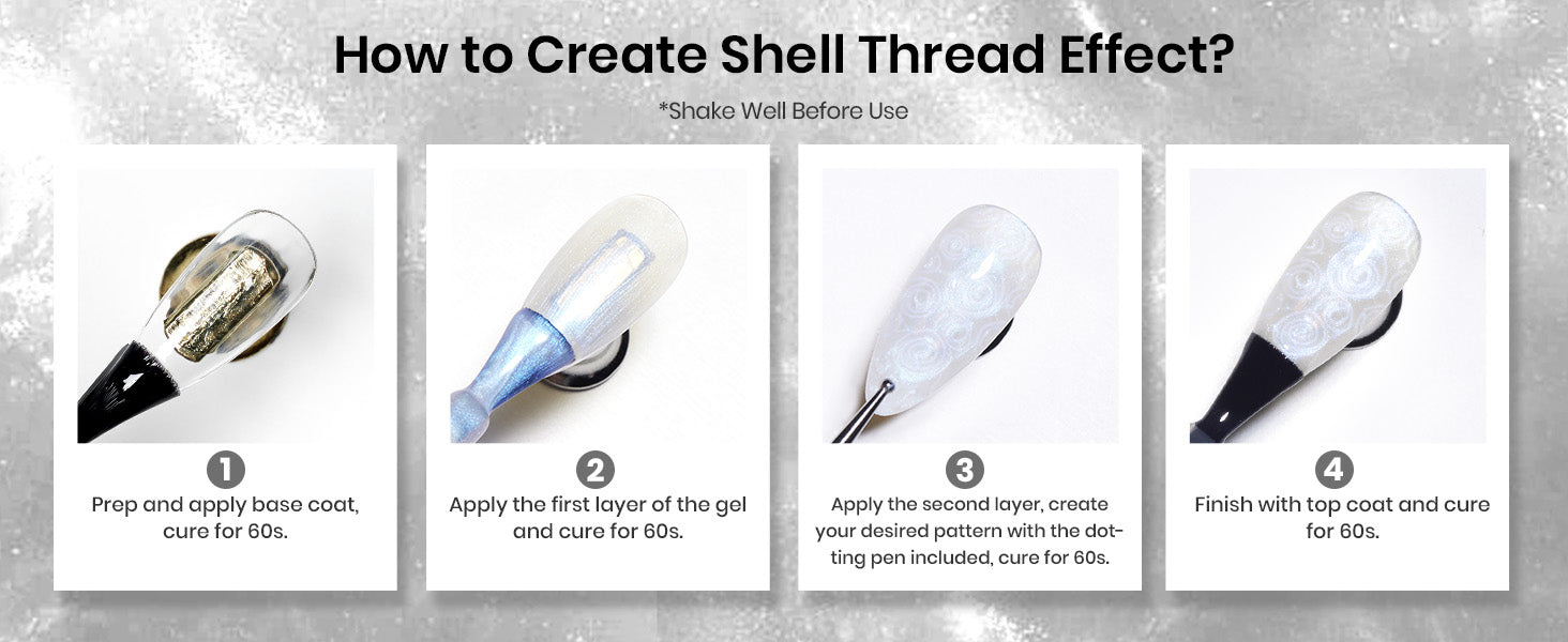• Beetles Unique Gel Nail Polish: This Pearl Shell Gel Nail Polish with mermaid unique design, This is 2-in-1 shimmer gel, not only can be pearl gel polish but also can be swirl thread nail gel, is available for any various shape, such as swirl, slash, curve ,etc.